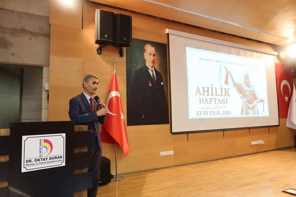 22-28 Eylül 2025 Ahilik Haftası Etkinlikler kapsamında okulumuzda Şed Kuşatma Gösterisi gerçekleştirildi. İlçe Milli Eğitim Müdürümüz Emin ÇIKRIKÇI başta olmak üzere Ortaöğretim ve Mesleki Teknik Şube Müdürümüz Erol DEMİR, Ahilik Kültürünü Araştırma ve Eğitim Vakfı temsilcileri,Ticaret Bakanlığı temsilcileri, Ticaret ve Sanayi Odası temsilcileri, BASEV Vakfı Temsilcileri, 27. Meslek Komitesi Başkan ve üyeleri, akademisyenler, mahalle muhtarlarımız ve öğrencilerimiz katıldı.