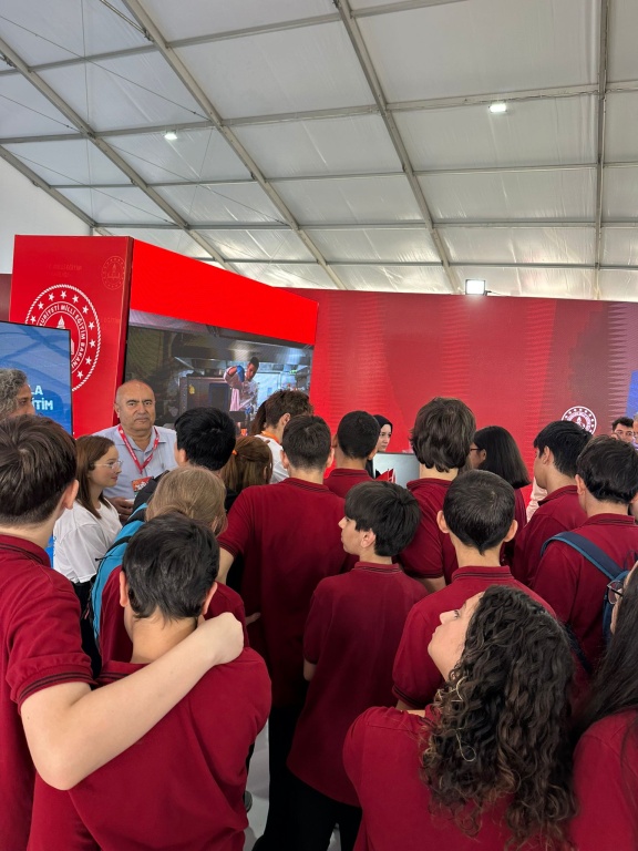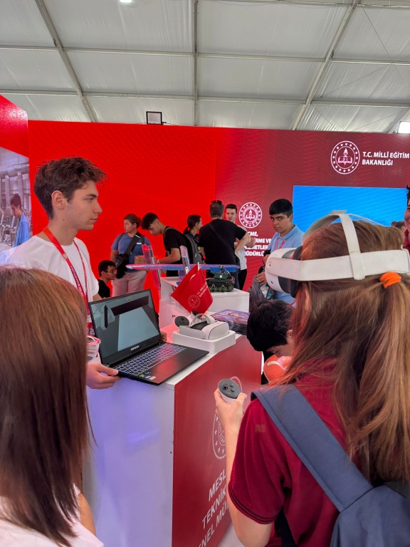 Teknofest 2025'e stant açarak biz de bu yıl teknoloji festivalinde katılımcı olarak yerimizi aldık. Okul Müdürümüz İrfan ÖZER, Okul Müdür Yardımcımız Münir ÇINAR, Matbaa Alan Şefimiz Nezahat AVCI ve öğrencilerimizden oluşan BASIMTEK ekibi, Matbaa Alan Şefimiz Nezahat AVCI'nın Tübitak Kabüllü Projesi Eğitim Teknolojileri alanında Güvenli Atölye projesini tanıtım amaçla standımızı Teknofest '25 kapsamında açtı. Standımızın yanı sıra okulumuz öğrencilerinin de gezi amaçlı katılımıyla Teknofest ruhunu ve heyecanını okulumuzda yaşatmaya devam ettik.
